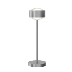 Das Besondere an der Deckenleuchte PUK SIDES ist, dass sie auf jeweils einer Seite der Schirme mit einer Linse aus Glas bestückt ist, die das Licht bündelt und auf effektvolle Weise an den Raum abgibt. Auf der anderen Seite ist eine Scheibe aus weiß mattiertem Glas angebracht.