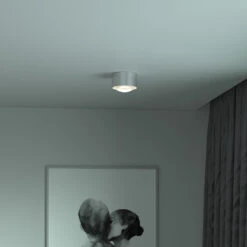 Dank ihrer speziellen Aufhängung lässt sich Puk Maxx Turn je nach Bedarf drehen und in verschiedene Richtungen schwenken. Auf diese Weise können bestimmte Objekte im Raum stilvoll in Szene gesetzt werden. Das dezente Design überzeugt mit seinem zeitlosen Metall-Look und der klassisch runden Bauform.