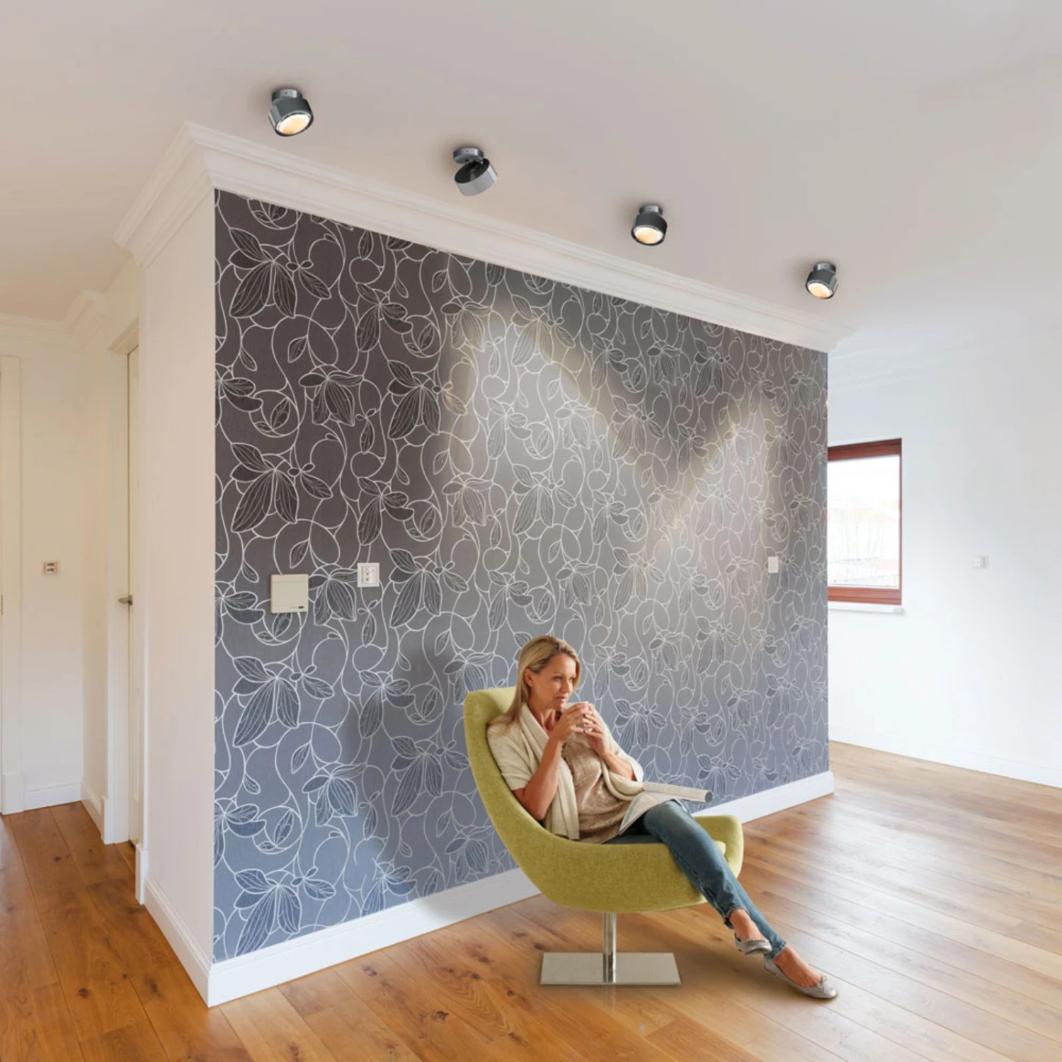 Die LED-Deckenleuchte Puk Maxx Move überzeugt mit ihrem innovativen System und dem dezenten Design. Sie lässt sich sowohl in der Neigung als auch in der Abstrahlrichtung ausrichten. Dank dieser Flexibilität kann man das Licht gezielt lenken. Aus diesem Grund eignet sich Puk Maxx Move optimal für Räume, in denen man bestimmte Objekte gut in Szene setzen möchte.