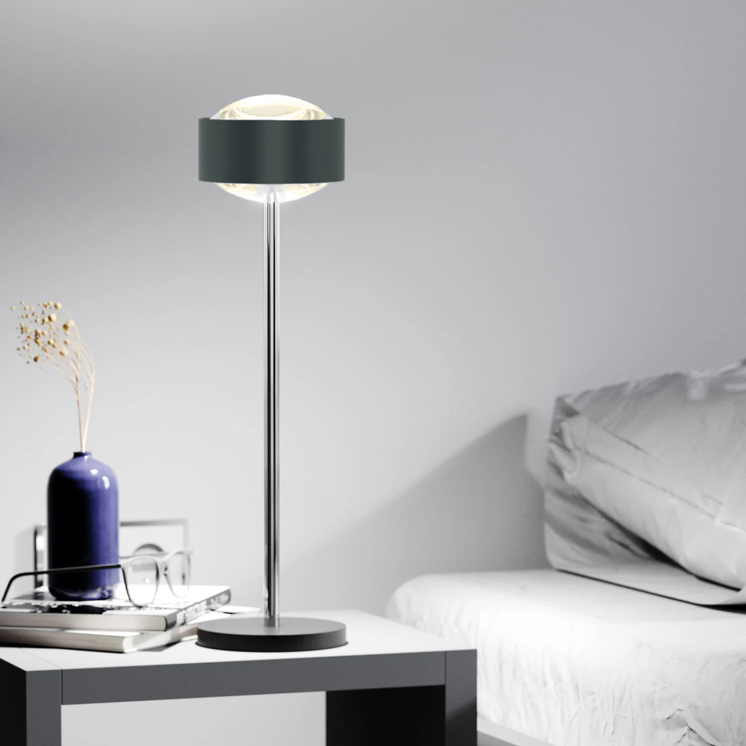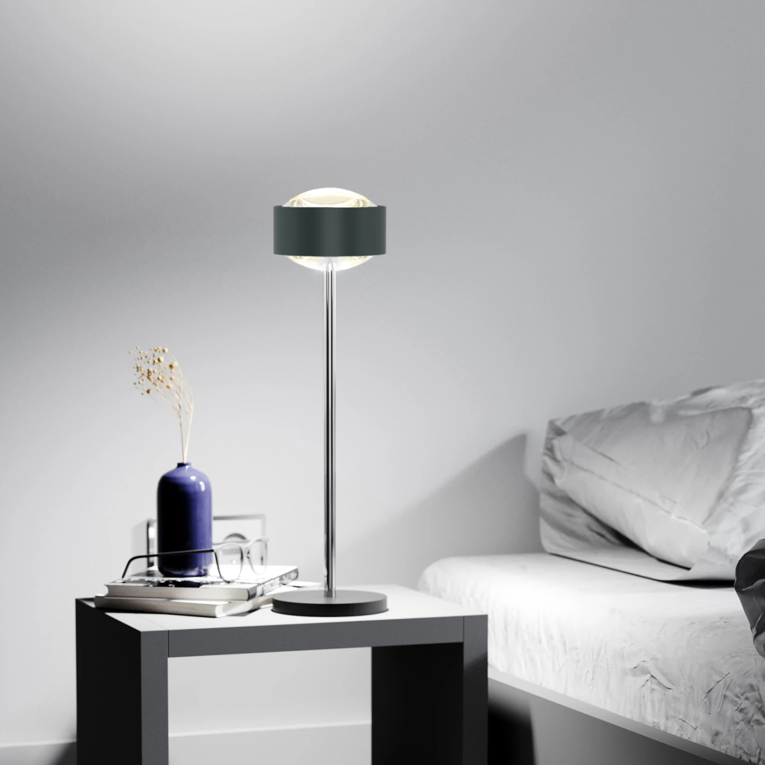 Die LED-Tischleuchte Puk Maxx Eye Table setzt sich aus einem hochwertigen, grazilen Gestell und Leuchtenfuß zusammen, die die Basis für den runden Leuchtenkopf bieten. Das schlanke, moderne Design spricht eine klare Formensprache und fügt sich elegant in moderne Wohnstile ein.