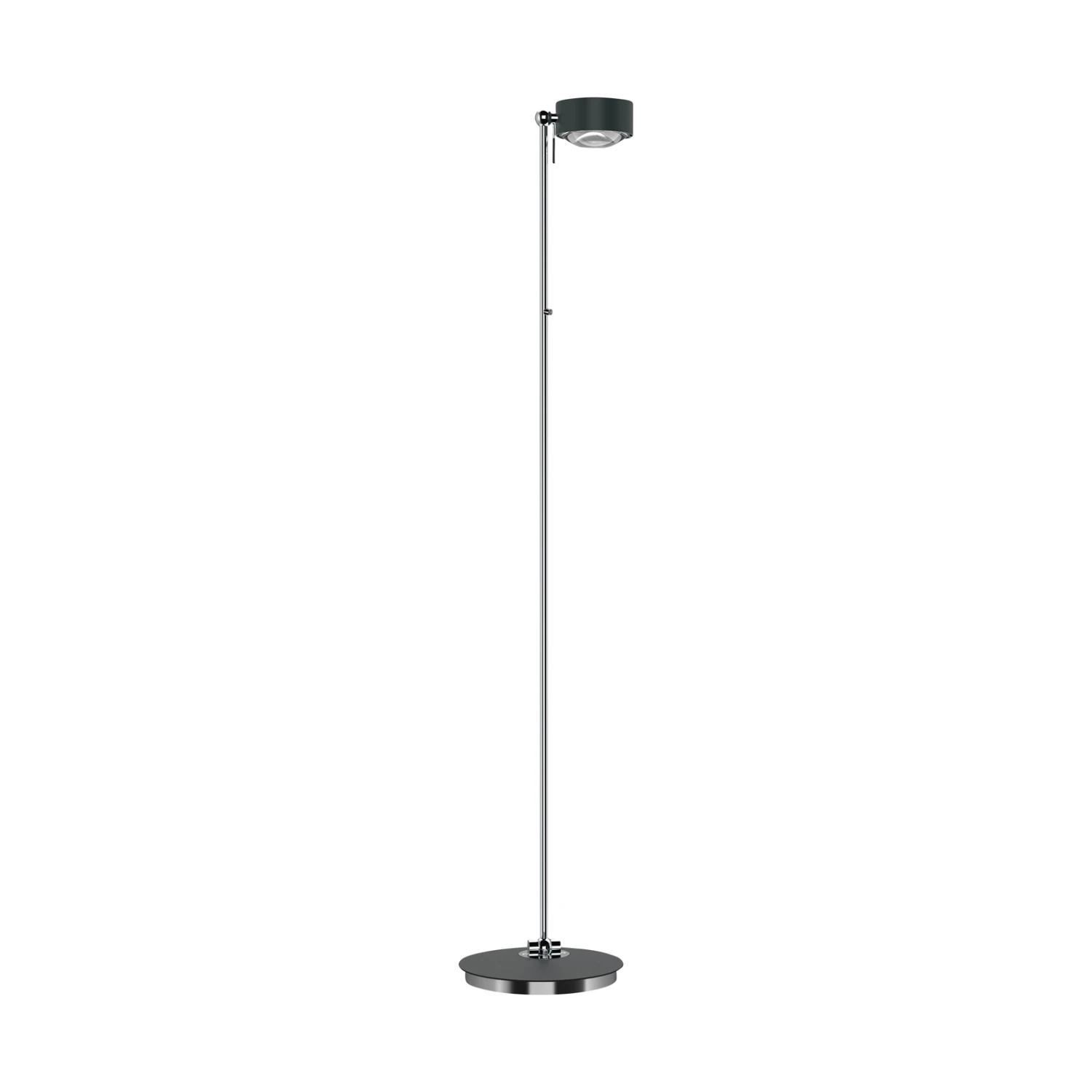Die LED-Stehleuchte Puk Maxx Floor Mini begeistert mit Eleganz und langlebigen Materialien gepaart mit hoher Funktionalität. Ihr graziler Arm verläuft aus dem stabilen Leuchtenfuß direkt in den dezenten, runden Leuchtenkopf, der sich mithilfe des Verstellstifts mühelos drehen lässt. Der Arm selbst lässt sich dank eines Gelenks schwenken. Über den Tastdimmer am Gestell kann die Lichthelligkeit reguliert werden.