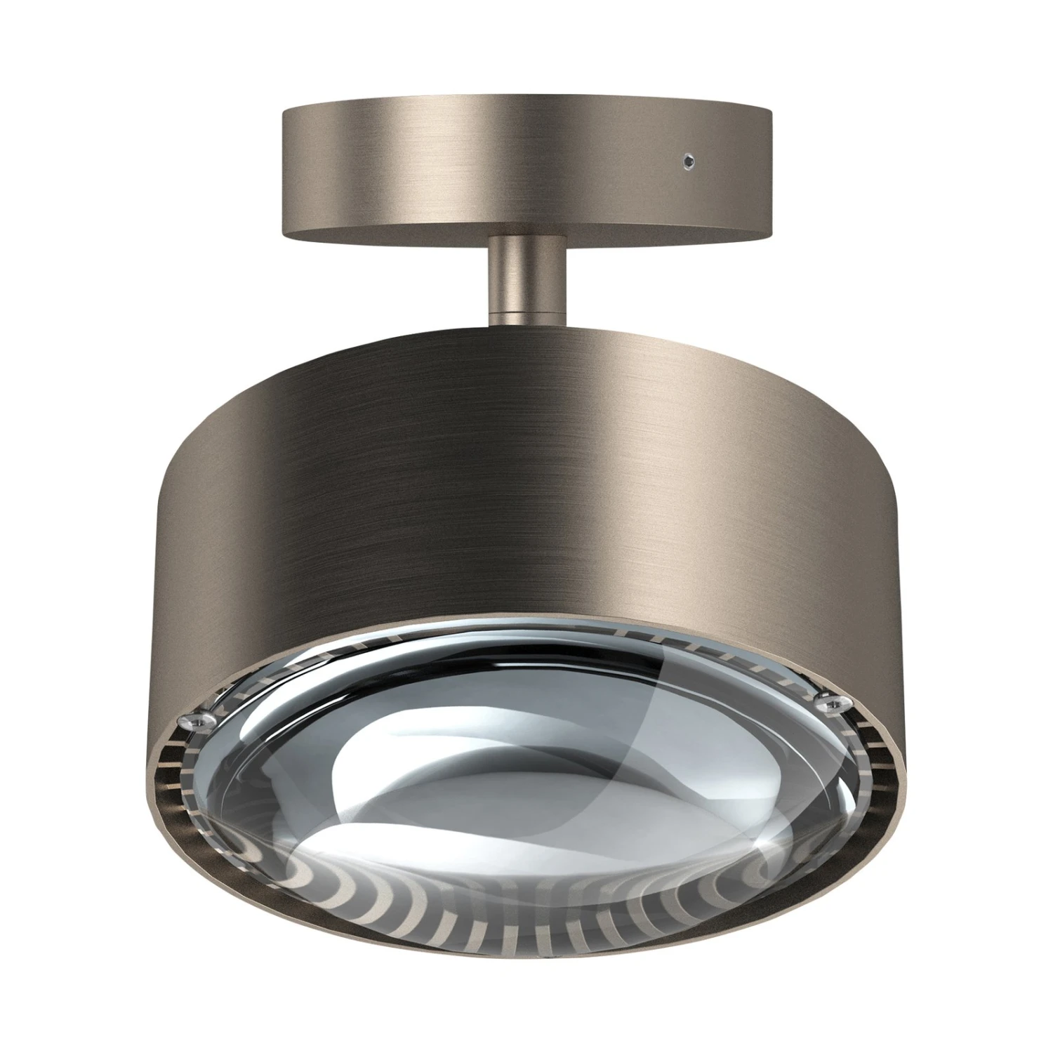 Der LED-Spot Puk Maxx Turn besteht aus einem kleinen, runden Baldachin, einem grazilen Arm mit Gelenk und einem runden Leuchtenkopf, in dem eine klare Linse aus Glas sitzt. Diese hochwertige und schlichte Kombination ist geprägt von Funktionalität und Modernität. Die Linse sorgt für einen zielgerichteten, markanten Lichtkegel, der in der Lage ist, Objekte und Bereiche bewusst und akzentuiert hervorzuheben. Das Gelenk gewährleistet die flexible Ausrichtung des Lichtstrahls, denn dadurch kann der Leuchtenkopf gedreht und geschwenkt werden.
